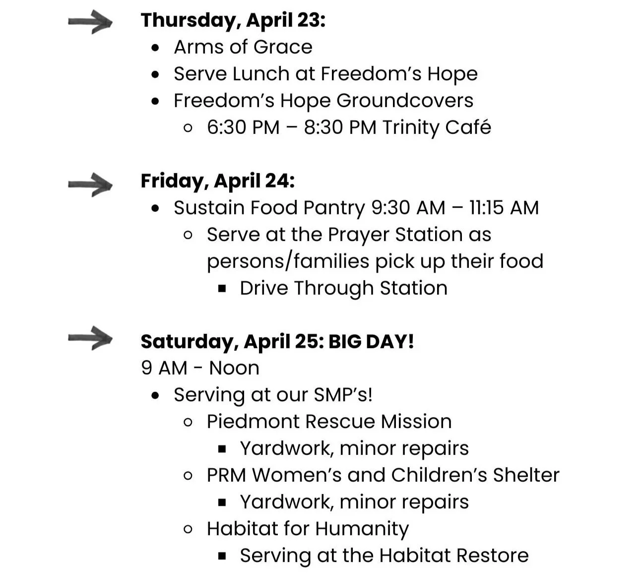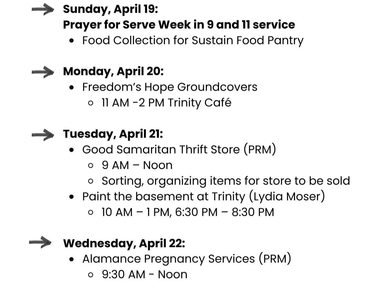 Goal: To take Trinity Teams to show God’s love for our community